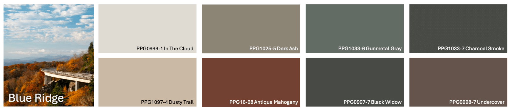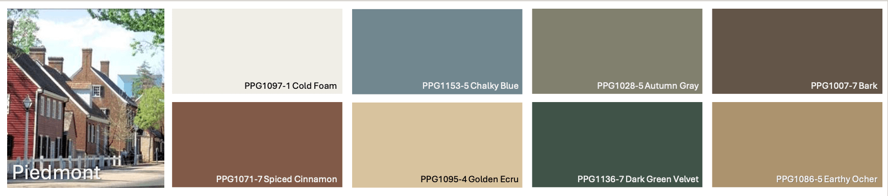 We also have three Designer-Curated Collections: Blue Ridge, Down East, and the Piedmont. These colors are professionally selected color families that allow you to mix and match siding, trim, shutters, and door combinations in beautiful, professionally coordinated combinations.
