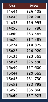 *Prices do not include the build-on-site fee as those rates vary. Credit card fees may apply. Please contact us or your local Liberty dealer for information on those rates.
